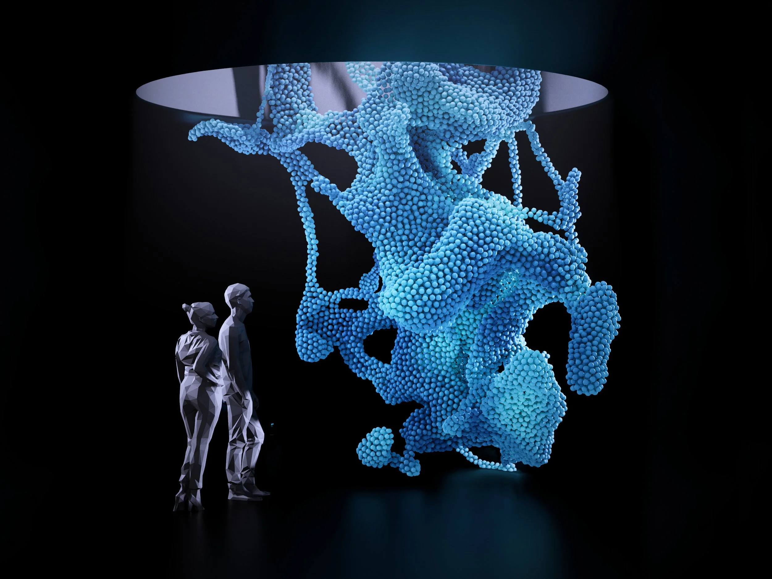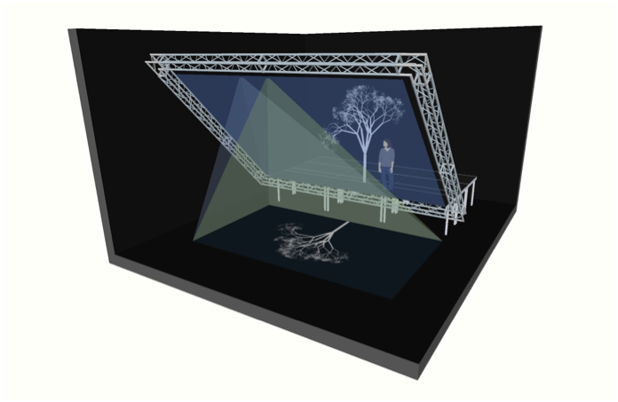 Third dimension is sound. Created by humans, AI or plants, as a threediemensional soundscape interconnected with 3D projections.